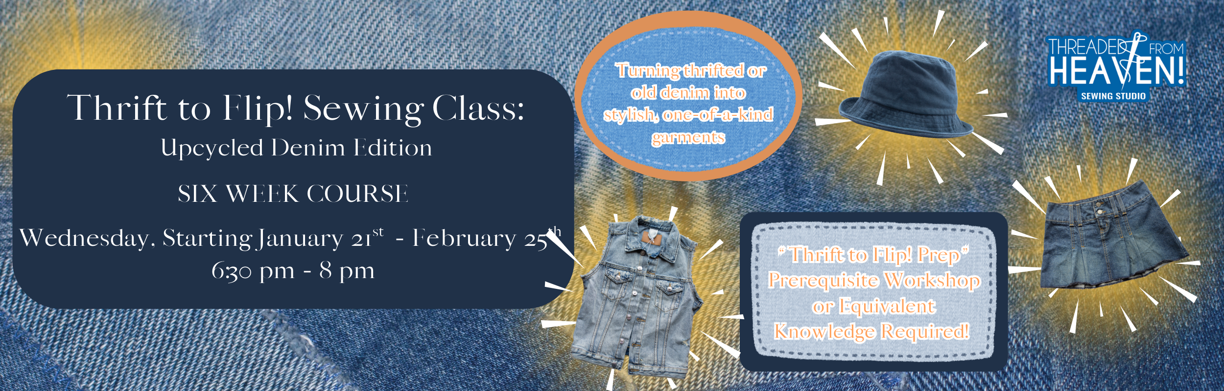 In Thrift to Flip! Upcycled Denim Edition, students will learn creative techniques to transform pre-loved denim into custom pieces that are functional, stylish, and sustainable. Whether you're upcycling old jeans from your own closet or a thrifted pair, this six-week journey blends fashion, sewing, and eco-conscious fun.